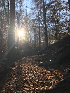 This photo was taken yesterday when I took our sweet Deja out for an afternoon walk. The sky was brilliant, the light, as shown here, was perfect as the sun began to slowly descend in the sky. I turned and paused to take in what surrounded me…the beauty of creation, the stillness of the woods, the quiet, the sparkle of light on each tree branch. So often we forget to pause to take in the splendor of what is right before us because we are too busy.